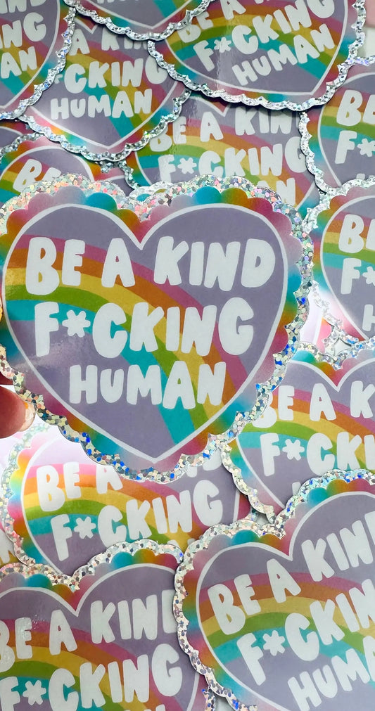 Be a Kind F*ucking Human Sticker, Rainbow, Holographic Glitter Sticker