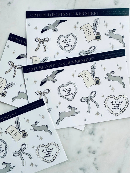 All's fair in Love and Poetry, Albatross, Hare, Waterproof Sticker Sheet, Planning & Journaling