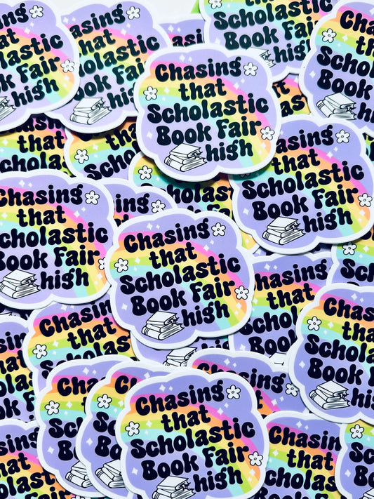 Chasing the Scholastic Book Fair High Sticker, Rainbow Bookish Sticker