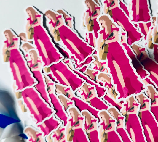 Eras Tour Acoustic Set Eras Outfit Sticker, Pink Cap Sleeve Eras Dress Sticker
