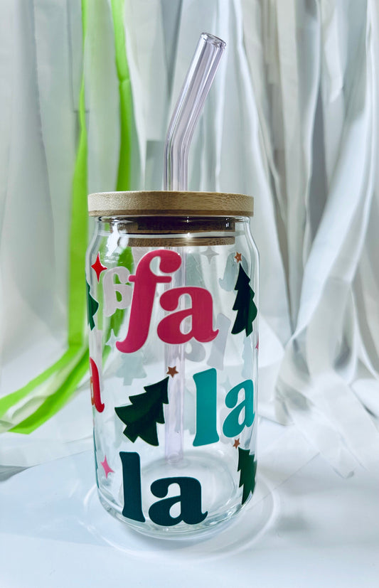 Fa la la la la, Christmas & Holiday Glass Beer Can, Cold Coffee Cup, Tumbler
