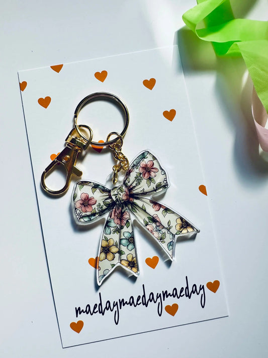 Floral, Coquette Bow Acrylic Keychain, Floral Ribbon and Bows, Dainty Trendy Keychain Aesthetic, Cute Trendy Bow Obsessed Girly Keychain