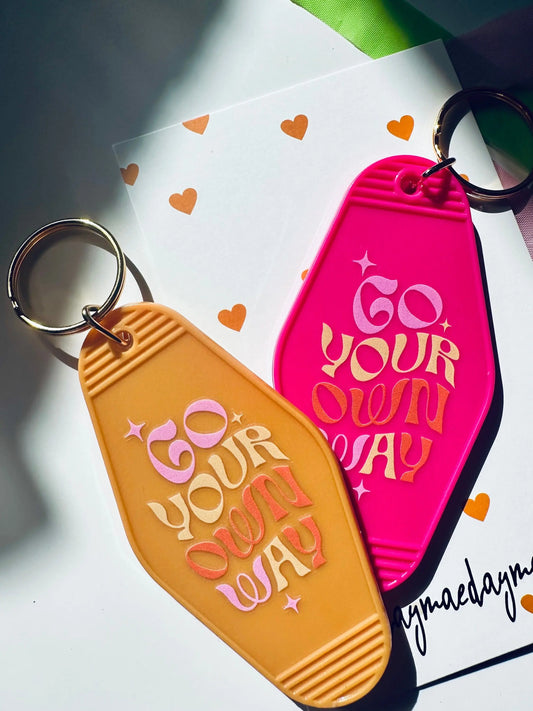 Go Your Own Way Vintage Motel Keychain, Cute Retro Hotel Keychain