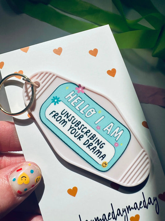 Hello, I am Unsubscribing From your Drama Retro Vintage Motel Keychain, Mental Health Awareness Cute Retro Hotel Keychain