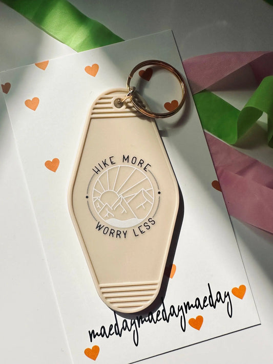 Hike More, Worry Less Vintage Motel Keychain, Cute Retro Hotel Keychain