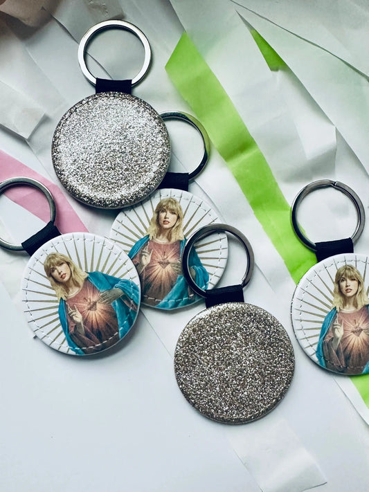 Holy Swift Gold Glitter Eras, Round Keychain