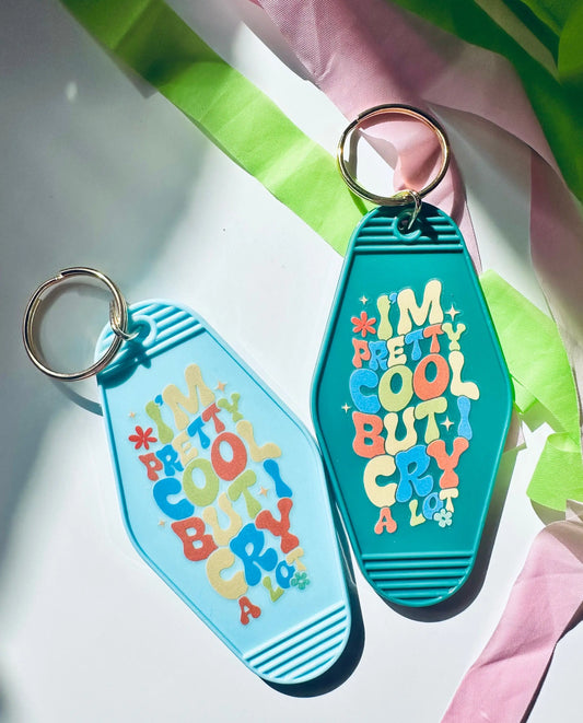 I'm Pretty Cool But I Cry A Lot Retro Vintage Motel Keychain, Mental Health Awareness Cute Retro Hotel Keychain
