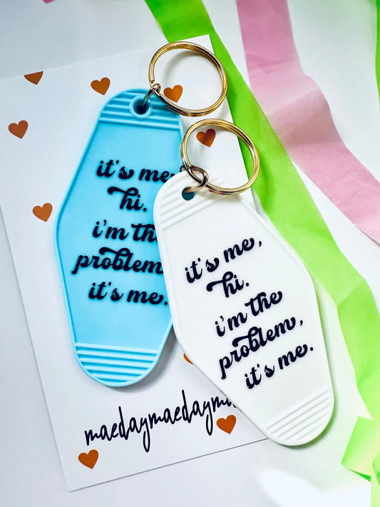It's me, Hi, I'm the Problem Its Me Vintage Motel Keychain, Cute Retro Hotel Keychain