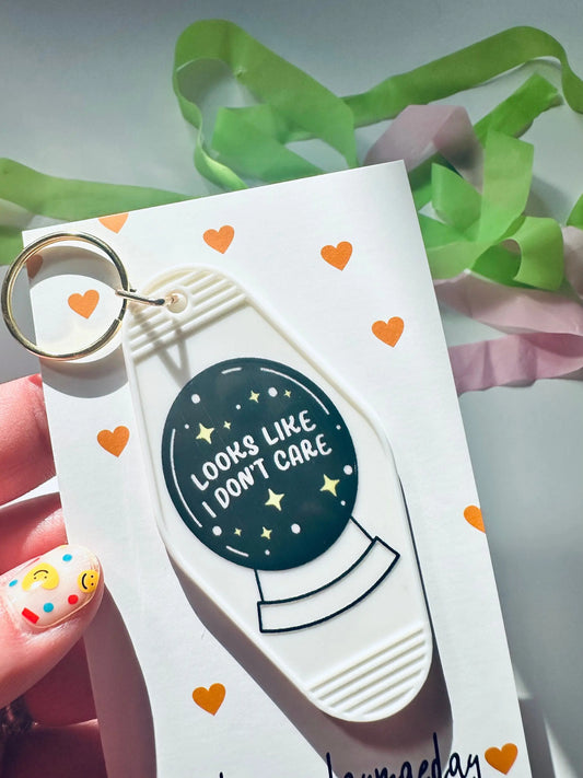 Looks Like I Dont Care, Crystal Ball Retro Vintage Motel Keychain, Mental Health Awareness Cute Retro Hotel Keychain