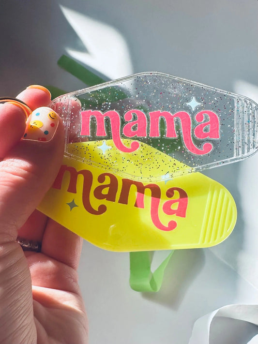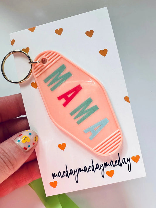 Multi-Colored Mama Vintage Motel Keychain, Mama Retro Hotel Keychain