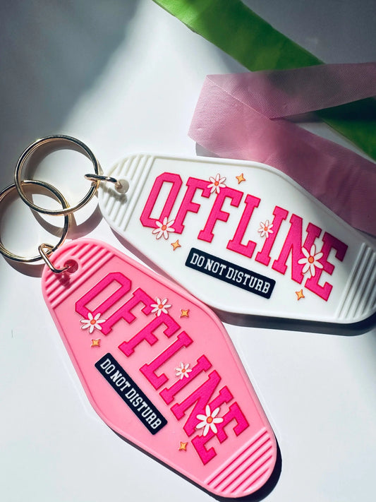 Offline, Do not Disturb Retro Vintage Motel Keychain, Mental Health Awareness Cute Retro Hotel Keychain