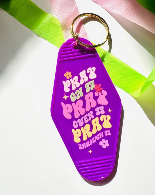 Pray on it, Pray Over it, Pray Through it Vintage Motel Keychain, Pray/Religious Retro Hotel Keychain