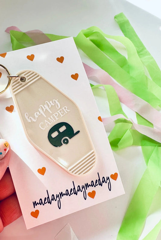 Happy Camper Vintage Motel Keychain