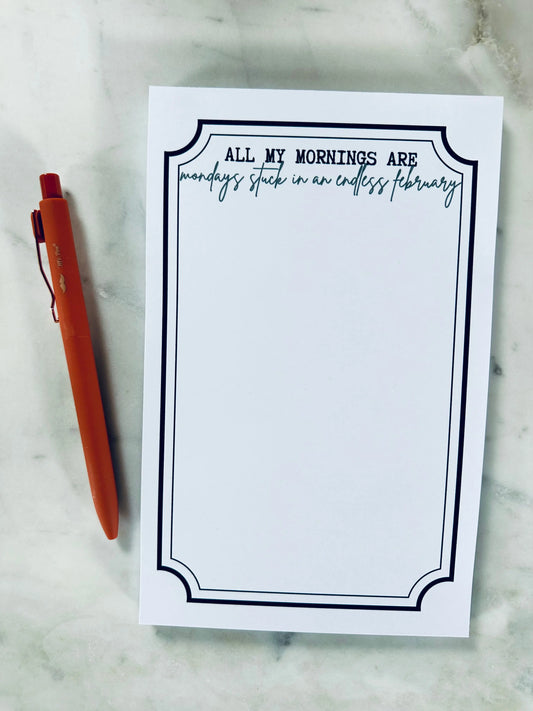All My Mornings are Mondays Stuck in An Endless February Notepad, A5, 50 Page To-Do List Notepad