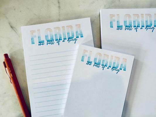 Half & Quarter Page Pop Culture Notepad, Florida!!! One Hell of a Drug Notepad/To-Do List