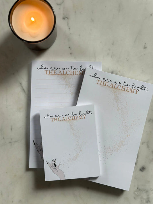 Half & Quarter Page(5.5x8.5") Pop Culture Notepad, Who are we to Fight the Alchemy 50 Page Notepad/To-Do List