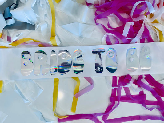 Holographic Silver, Retro Bride to Be Sash | Bachelorette Party | Gift for Bride | Bride-to-Be | Bridal Shower | Disco Party | Last Disco