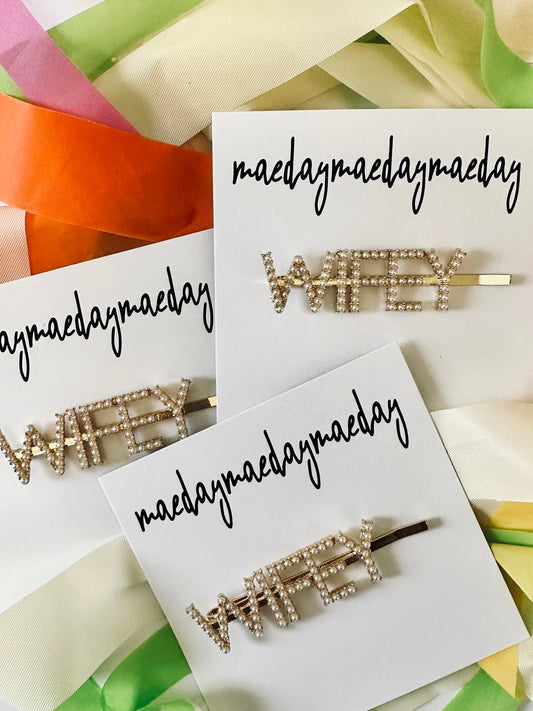 Pearl WIFEY Hair Barrette Pin, Bride Hair Accessories, Bride/Wifey Letter Hair Clip/Pin