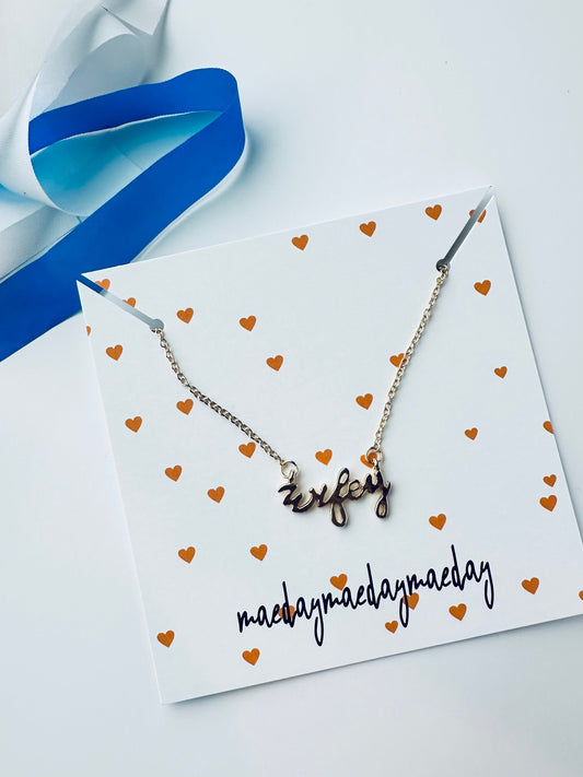 Gold, Silver or Rose Gold Wifey Necklace, Gift for Bride-to-Be, Bride Jewelry, Bachelorette Party, Bridal Shower Gift, Gift for Bride, Wife