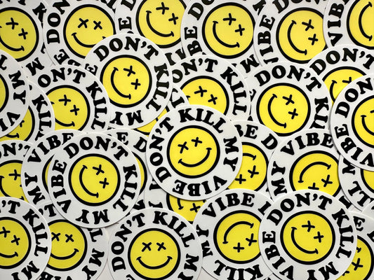 Don't Kill My Vibe Yellow Face Permanent, Weatherproof Sticker