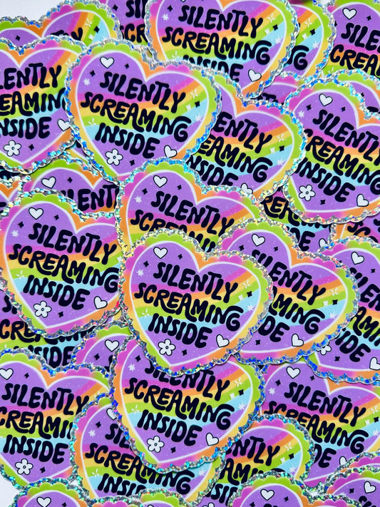 Silently Screaming Inside Sticker, Rainbow Heart Sticker
