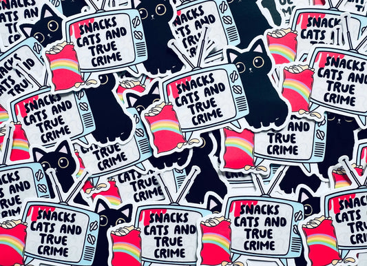 Snacks, Cats and True Crime Sticker, True Crime Addict Sticker