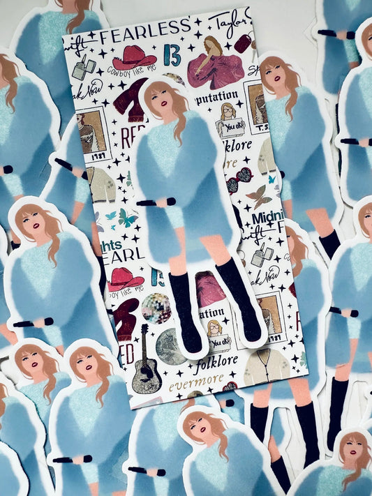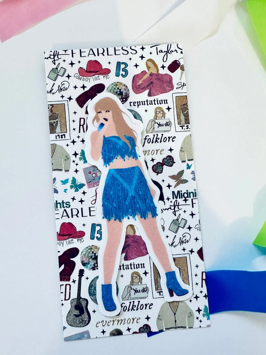 Blue Eras Shirt Dress Sticker, Blue Fuzzy Jacket Eras Inspired Vinyl Sticker