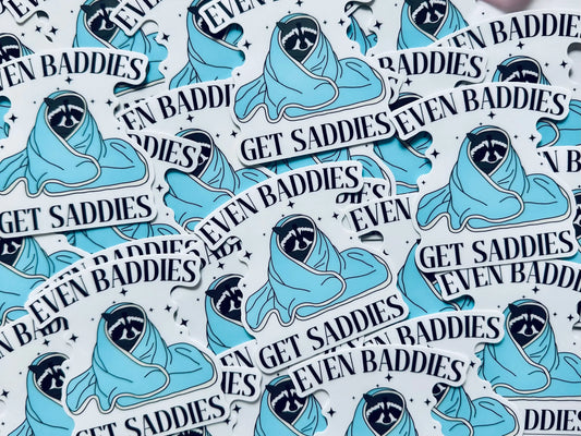 Even Baddies Get Saddies, Raccoon Mental Health Sticker
